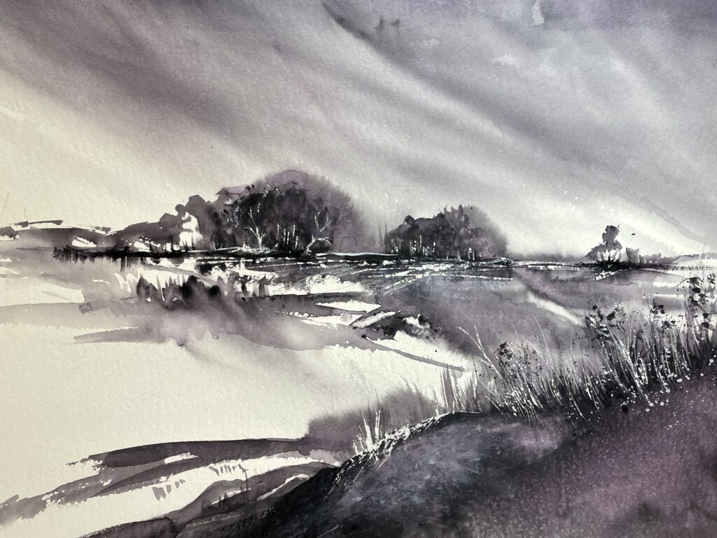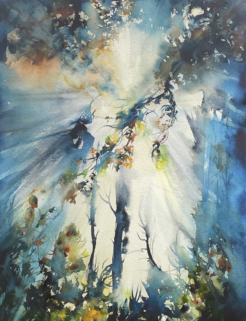 Jag arbetar främst med akvarell, mixed media och intuitivt måleri, och leder kreativa, kravlösa kurser för privatpersoner, föreningar och verksamheter som Afasiföreningen, FUB och Skaparverkstan.